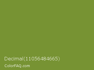 Decimal 11056484665 Color is a normal lime color and the nearest color is Palm Leaf #6f9940. Hex code #779333 and RGB value is rgb(119,147,51). In RGB color space, this color is composed of 47% red, 58% green, 20% blue, In CMYK color space, this color is composed of 19% cyan, 0% magenta, 65% yellow , 42% black , In HSL color space, this color has a hue angle of 78° , 48% saturation and 39% lightness.