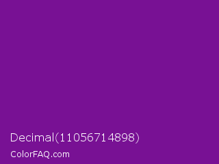 Decimal 11056714898 Color is a normal purple color and the nearest color is Seance #731e8f. Hex code #781194 and RGB value is rgb(120,17,148). In RGB color space, this color is composed of 47% red, 7% green, 58% blue, In CMYK color space, this color is composed of 19% cyan, 89% magenta, 0% yellow , 42% black , In HSL color space, this color has a hue angle of 287° , 79% saturation and 32% lightness.