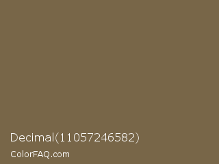 Decimal 11057246582 Color is a normal orange color and the nearest color is Roman Coffee #795d4c. Hex code #786648 and RGB value is rgb(120,102,72). In RGB color space, this color is composed of 47% red, 40% green, 28% blue, In CMYK color space, this color is composed of 0% cyan, 15% magenta, 40% yellow , 53% black , In HSL color space, this color has a hue angle of 38° , 25% saturation and 38% lightness.