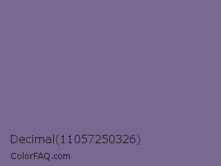 Decimal 11057250326 Color is a normal violet color and the nearest color is Rum #796989. Hex code #786990 and RGB value is rgb(120,105,144). In RGB color space, this color is composed of 47% red, 41% green, 56% blue, In CMYK color space, this color is composed of 17% cyan, 27% magenta, 0% yellow , 44% black , In HSL color space, this color has a hue angle of 263° , 16% saturation and 49% lightness.