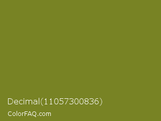 Decimal 11057300836 Color is a normal yellow color and the nearest color is Pacifika #778120. Hex code #788324 and RGB value is rgb(120,131,36). In RGB color space, this color is composed of 47% red, 51% green, 14% blue, In CMYK color space, this color is composed of 8% cyan, 0% magenta, 73% yellow , 49% black , In HSL color space, this color has a hue angle of 67° , 57% saturation and 33% lightness.