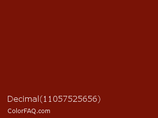Decimal 11057525656 Color is a dark red color and the nearest color is Dark Burgundy #770f05. Hex code #791306 and RGB value is rgb(121,19,6). In RGB color space, this color is composed of 47% red, 7% green, 2% blue, In CMYK color space, this color is composed of 0% cyan, 84% magenta, 95% yellow , 53% black , In HSL color space, this color has a hue angle of 7° , 91% saturation and 25% lightness.