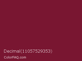 Decimal 11057529353 Color is a dark rose color and the nearest color is Claret #7f1734. Hex code #791631 and RGB value is rgb(121,22,49). In RGB color space, this color is composed of 47% red, 9% green, 19% blue, In CMYK color space, this color is composed of 0% cyan, 82% magenta, 60% yellow , 53% black , In HSL color space, this color has a hue angle of 344° , 69% saturation and 28% lightness.