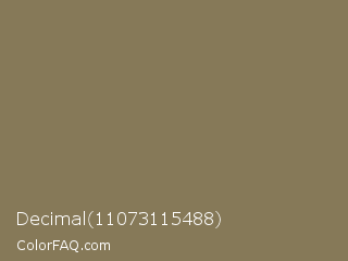 Decimal 11073115488 Color is a normal orange color and the nearest color is Shadow #8a795d. Hex code #867958 and RGB value is rgb(134,121,88). In RGB color space, this color is composed of 53% red, 47% green, 35% blue, In CMYK color space, this color is composed of 0% cyan, 10% magenta, 34% yellow , 47% black , In HSL color space, this color has a hue angle of 43° , 21% saturation and 44% lightness.