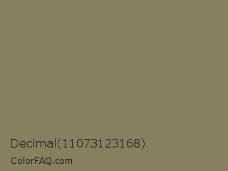 Decimal 11073123168 Color is a normal yellow color and the nearest color is Clay Creek #8a8360. Hex code #868060 and RGB value is rgb(134,128,96). In RGB color space, this color is composed of 53% red, 50% green, 38% blue, In CMYK color space, this color is composed of 0% cyan, 4% magenta, 28% yellow , 47% black , In HSL color space, this color has a hue angle of 51° , 17% saturation and 45% lightness.
