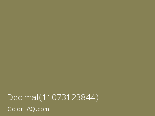 Decimal 11073123844 Color is a normal yellow color and the nearest color is Dark Tan #918151. Hex code #868154 and RGB value is rgb(134,129,84). In RGB color space, this color is composed of 53% red, 51% green, 33% blue, In CMYK color space, this color is composed of 0% cyan, 4% magenta, 37% yellow , 47% black , In HSL color space, this color has a hue angle of 54° , 23% saturation and 43% lightness.