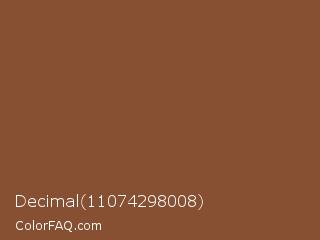 Decimal 11074298008 Color is a normal orange color and the nearest color is Potters Clay #8c5738. Hex code #885032 and RGB value is rgb(136,80,50). In RGB color space, this color is composed of 53% red, 31% green, 20% blue, In CMYK color space, this color is composed of 0% cyan, 41% magenta, 63% yellow , 47% black , In HSL color space, this color has a hue angle of 21° , 46% saturation and 36% lightness.