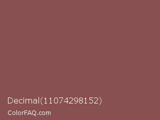 Decimal 11074298152 Color is a normal red color and the nearest color is Spicy Mix #885342. Hex code #885050 and RGB value is rgb(136,80,80). In RGB color space, this color is composed of 53% red, 31% green, 31% blue, In CMYK color space, this color is composed of 0% cyan, 41% magenta, 41% yellow , 47% black , In HSL color space, this color has a hue angle of 0° , 26% saturation and 42% lightness.