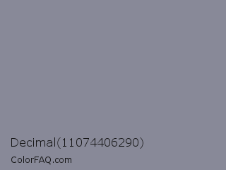 Decimal 11074406290 Color is a normal blue color and the nearest color is Roman Silver #838996. Hex code #888998 and RGB value is rgb(136,137,152). In RGB color space, this color is composed of 53% red, 54% green, 60% blue, In CMYK color space, this color is composed of 11% cyan, 10% magenta, 0% yellow , 40% black , In HSL color space, this color has a hue angle of 236° , 7% saturation and 56% lightness.