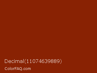 Decimal 11074639889 Color is a dark red color and the nearest color is Smokey Topaz #832a0d. Hex code #892203 and RGB value is rgb(137,34,3). In RGB color space, this color is composed of 54% red, 13% green, 1% blue, In CMYK color space, this color is composed of 0% cyan, 75% magenta, 98% yellow , 46% black , In HSL color space, this color has a hue angle of 14° , 96% saturation and 27% lightness.