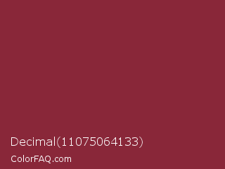 Decimal 11075064133 Color is a normal red color and the nearest color is Antique Ruby #841b2d. Hex code #892739 and RGB value is rgb(137,39,57). In RGB color space, this color is composed of 54% red, 15% green, 22% blue, In CMYK color space, this color is composed of 0% cyan, 72% magenta, 58% yellow , 46% black , In HSL color space, this color has a hue angle of 349° , 56% saturation and 35% lightness.
