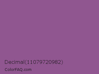 Decimal 11079720982 Color is a normal magenta color and the nearest color is Razzmic Berry #8d4e85. Hex code #905690 and RGB value is rgb(144,86,144). In RGB color space, this color is composed of 56% red, 34% green, 56% blue, In CMYK color space, this color is composed of 0% cyan, 40% magenta, 0% yellow , 44% black , In HSL color space, this color has a hue angle of 300° , 25% saturation and 45% lightness.