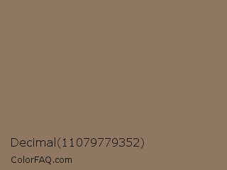 Decimal 11079779352 Color is a normal orange color and the nearest color is Cement #8d7662. Hex code #907762 and RGB value is rgb(144,119,98). In RGB color space, this color is composed of 56% red, 47% green, 38% blue, In CMYK color space, this color is composed of 0% cyan, 17% magenta, 32% yellow , 44% black , In HSL color space, this color has a hue angle of 27° , 19% saturation and 47% lightness.