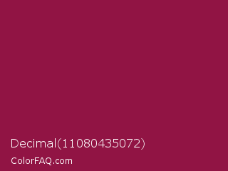 Decimal 11080435072 Color is a normal rose color and the nearest color is Disco #871550. Hex code #911444 and RGB value is rgb(145,20,68). In RGB color space, this color is composed of 57% red, 8% green, 27% blue, In CMYK color space, this color is composed of 0% cyan, 86% magenta, 53% yellow , 43% black , In HSL color space, this color has a hue angle of 337° , 76% saturation and 32% lightness.
