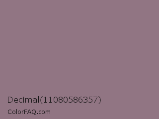 Decimal 11080586357 Color is a normal rose color and the nearest color is Bazaar #98777b. Hex code #917583 and RGB value is rgb(145,117,131). In RGB color space, this color is composed of 57% red, 46% green, 51% blue, In CMYK color space, this color is composed of 0% cyan, 19% magenta, 10% yellow , 43% black , In HSL color space, this color has a hue angle of 330° , 11% saturation and 51% lightness.