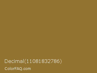 Decimal 11081832786 Color is a normal orange color and the nearest color is Metallic Sunburst #9c7c38. Hex code #937330 and RGB value is rgb(147,115,48). In RGB color space, this color is composed of 58% red, 45% green, 19% blue, In CMYK color space, this color is composed of 0% cyan, 22% magenta, 67% yellow , 42% black , In HSL color space, this color has a hue angle of 41° , 51% saturation and 38% lightness.