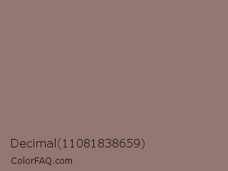 Decimal 11081838659 Color is a normal red color and the nearest color is Hemp #907874. Hex code #937773 and RGB value is rgb(147,119,115). In RGB color space, this color is composed of 58% red, 47% green, 45% blue, In CMYK color space, this color is composed of 0% cyan, 19% magenta, 22% yellow , 42% black , In HSL color space, this color has a hue angle of 8° , 13% saturation and 51% lightness.