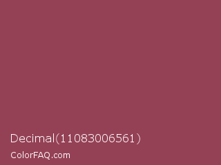 Decimal 11083006561 Color is a normal red color and the nearest color is Quinacridone Magenta #8e3a59. Hex code #954155 and RGB value is rgb(149,65,85). In RGB color space, this color is composed of 58% red, 25% green, 33% blue, In CMYK color space, this color is composed of 0% cyan, 56% magenta, 43% yellow , 42% black , In HSL color space, this color has a hue angle of 346° , 39% saturation and 42% lightness.