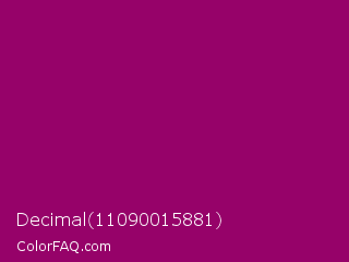 Decimal 11090015881 Color is a dark magenta color and the nearest color is Fresh Eggplant #990066. Hex code #960269 and RGB value is rgb(150,2,105). In RGB color space, this color is composed of 59% red, 1% green, 41% blue, In CMYK color space, this color is composed of 0% cyan, 99% magenta, 30% yellow , 41% black , In HSL color space, this color has a hue angle of 318° , 97% saturation and 30% lightness.