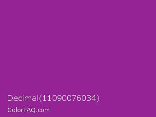 Decimal 11090076034 Color is a normal magenta color and the nearest color is Violet Eggplant #991199. Hex code #962396 and RGB value is rgb(150,35,150). In RGB color space, this color is composed of 59% red, 14% green, 59% blue, In CMYK color space, this color is composed of 0% cyan, 77% magenta, 0% yellow , 41% black , In HSL color space, this color has a hue angle of 300° , 62% saturation and 36% lightness.