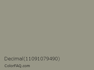Decimal 11091079490 Color is a normal yellow color and the nearest color is Lemon Grass #9b9e8f. Hex code #979686 and RGB value is rgb(151,150,134). In RGB color space, this color is composed of 59% red, 59% green, 53% blue, In CMYK color space, this color is composed of 0% cyan, 1% magenta, 11% yellow , 41% black , In HSL color space, this color has a hue angle of 56° , 8% saturation and 56% lightness.