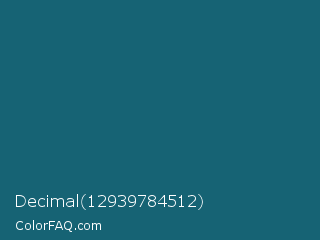 Decimal 12939784512 Color is a dark cyan color and the nearest color is Blumine #18587a. Hex code #166374 and RGB value is rgb(22,99,116). In RGB color space, this color is composed of 9% red, 39% green, 45% blue, In CMYK color space, this color is composed of 81% cyan, 15% magenta, 0% yellow , 55% black , In HSL color space, this color has a hue angle of 191° , 68% saturation and 27% lightness.