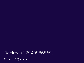 Decimal 12940886869 Color is a very dark indigo color and the nearest color is Tolopea #1b0245. Hex code #180643 and RGB value is rgb(24,6,67). In RGB color space, this color is composed of 9% red, 2% green, 26% blue, In CMYK color space, this color is composed of 64% cyan, 91% magenta, 0% yellow , 74% black , In HSL color space, this color has a hue angle of 258° , 84% saturation and 14% lightness.