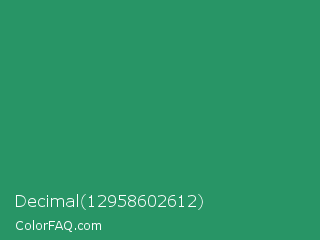 Decimal 12958602612 Color is a normal green color and the nearest color is Eucalyptus #278a5b. Hex code #289566 and RGB value is rgb(40,149,102). In RGB color space, this color is composed of 16% red, 58% green, 40% blue, In CMYK color space, this color is composed of 73% cyan, 0% magenta, 32% yellow , 42% black , In HSL color space, this color has a hue angle of 154° , 58% saturation and 37% lightness.