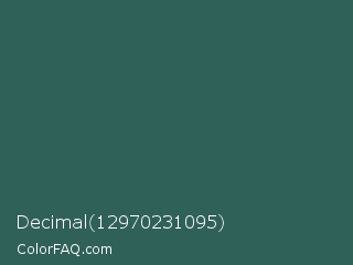 Decimal 12970231095 Color is a dark cyan color and the nearest color is Spectra #2f5a57. Hex code #306159 and RGB value is rgb(48,97,89). In RGB color space, this color is composed of 19% red, 38% green, 35% blue, In CMYK color space, this color is composed of 51% cyan, 0% magenta, 8% yellow , 62% black , In HSL color space, this color has a hue angle of 170° , 34% saturation and 28% lightness.