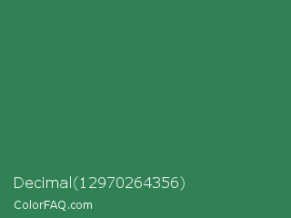 Decimal 12970264356 Color is a normal green color and the nearest color is Sea Green #2e8b57. Hex code #308154 and RGB value is rgb(48,129,84). In RGB color space, this color is composed of 19% red, 51% green, 33% blue, In CMYK color space, this color is composed of 63% cyan, 0% magenta, 35% yellow , 49% black , In HSL color space, this color has a hue angle of 147° , 46% saturation and 35% lightness.