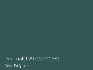 Decimal 12972279168 Color is a dark cyan color and the nearest color is Spectra #2f5a57. Hex code #335754 and RGB value is rgb(51,87,84). In RGB color space, this color is composed of 20% red, 34% green, 33% blue, In CMYK color space, this color is composed of 41% cyan, 0% magenta, 3% yellow , 66% black , In HSL color space, this color has a hue angle of 175° , 26% saturation and 27% lightness.