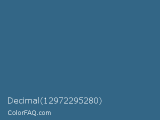 Decimal 12972295280 Color is a normal blue color and the nearest color is Calypso #31728d. Hex code #336686 and RGB value is rgb(51,102,134). In RGB color space, this color is composed of 20% red, 40% green, 53% blue, In CMYK color space, this color is composed of 62% cyan, 24% magenta, 0% yellow , 47% black , In HSL color space, this color has a hue angle of 203° , 45% saturation and 36% lightness.