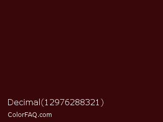 Decimal 12976288321 Color is a very dark red color and the nearest color is Aubergine #3b0910. Hex code #390709 and RGB value is rgb(57,7,9). In RGB color space, this color is composed of 22% red, 3% green, 4% blue, In CMYK color space, this color is composed of 0% cyan, 88% magenta, 84% yellow , 78% black , In HSL color space, this color has a hue angle of 358° , 78% saturation and 13% lightness.