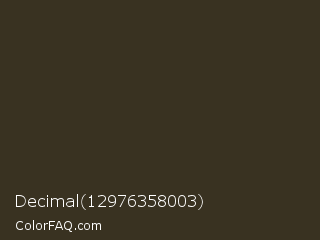 Decimal 12976358003 Color is a very dark orange color and the nearest color is Birch #373021. Hex code #393221 and RGB value is rgb(57,50,33). In RGB color space, this color is composed of 22% red, 20% green, 13% blue, In CMYK color space, this color is composed of 0% cyan, 12% magenta, 42% yellow , 78% black , In HSL color space, this color has a hue angle of 43° , 27% saturation and 18% lightness.