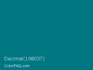Decimal 198037 Color is a dark cyan color and the nearest color is Blue Lagoon #017987. Hex code #007783 and RGB value is rgb(0,119,131). In RGB color space, this color is composed of 0% red, 47% green, 51% blue, In CMYK color space, this color is composed of 100% cyan, 9% magenta, 0% yellow , 49% black , In HSL color space, this color has a hue angle of 185° , 100% saturation and 26% lightness.
