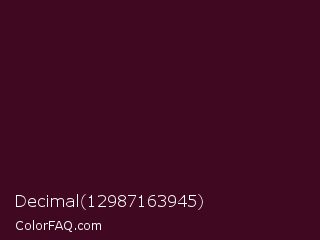 Decimal 12987163945 Color is a very dark rose color and the nearest color is Toledo #3a0020. Hex code #400921 and RGB value is rgb(64,9,33). In RGB color space, this color is composed of 25% red, 4% green, 13% blue, In CMYK color space, this color is composed of 0% cyan, 86% magenta, 48% yellow , 75% black , In HSL color space, this color has a hue angle of 334° , 75% saturation and 14% lightness.