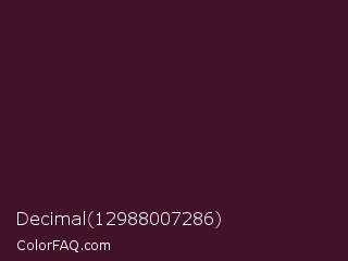 Decimal 12988007286 Color is a very dark rose color and the nearest color is Jon #3b1f1f. Hex code #411228 and RGB value is rgb(65,18,40). In RGB color space, this color is composed of 25% red, 7% green, 16% blue, In CMYK color space, this color is composed of 0% cyan, 72% magenta, 38% yellow , 75% black , In HSL color space, this color has a hue angle of 332° , 57% saturation and 16% lightness.