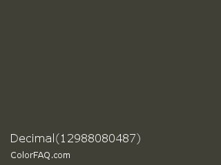 Decimal 12988080487 Color is a dark yellow color and the nearest color is Armadillo #433e37. Hex code #414037 and RGB value is rgb(65,64,55). In RGB color space, this color is composed of 25% red, 25% green, 22% blue, In CMYK color space, this color is composed of 0% cyan, 2% magenta, 15% yellow , 75% black , In HSL color space, this color has a hue angle of 54° , 8% saturation and 24% lightness.