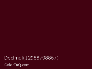Decimal 12988798867 Color is a very dark red color and the nearest color is Temptress #3b000b. Hex code #420211 and RGB value is rgb(66,2,17). In RGB color space, this color is composed of 26% red, 1% green, 7% blue, In CMYK color space, this color is composed of 0% cyan, 97% magenta, 74% yellow , 74% black , In HSL color space, this color has a hue angle of 346° , 94% saturation and 13% lightness.