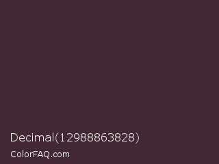 Decimal 12988863828 Color is a very dark rose color and the nearest color is Old Burgundy #43302e. Hex code #422832 and RGB value is rgb(66,40,50). In RGB color space, this color is composed of 26% red, 16% green, 20% blue, In CMYK color space, this color is composed of 0% cyan, 39% magenta, 24% yellow , 74% black , In HSL color space, this color has a hue angle of 337° , 25% saturation and 21% lightness.