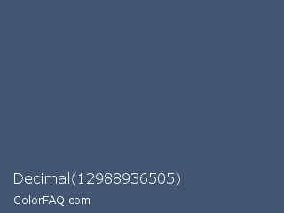 Decimal 12988936505 Color is a normal blue color and the nearest color is Fiord #405169. Hex code #425573 and RGB value is rgb(66,85,115). In RGB color space, this color is composed of 26% red, 33% green, 45% blue, In CMYK color space, this color is composed of 43% cyan, 26% magenta, 0% yellow , 55% black , In HSL color space, this color has a hue angle of 217° , 27% saturation and 35% lightness.