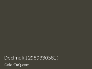 Decimal 12989330581 Color is a dark yellow color and the nearest color is Armadillo #433e37. Hex code #434137 and RGB value is rgb(67,65,55). In RGB color space, this color is composed of 26% red, 25% green, 22% blue, In CMYK color space, this color is composed of 0% cyan, 3% magenta, 18% yellow , 74% black , In HSL color space, this color has a hue angle of 50° , 10% saturation and 24% lightness.
