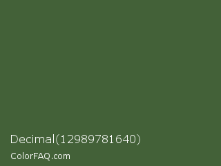 Decimal 12989781640 Color is a dark green color and the nearest color is Tom Thumb #3f583b. Hex code #436138 and RGB value is rgb(67,97,56). In RGB color space, this color is composed of 26% red, 38% green, 22% blue, In CMYK color space, this color is composed of 31% cyan, 0% magenta, 42% yellow , 62% black , In HSL color space, this color has a hue angle of 104° , 27% saturation and 30% lightness.