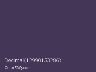 Decimal 12990153286 Color is a dark violet color and the nearest color is Gun Powder #414257. Hex code #443656 and RGB value is rgb(68,54,86). In RGB color space, this color is composed of 27% red, 21% green, 34% blue, In CMYK color space, this color is composed of 21% cyan, 37% magenta, 0% yellow , 66% black , In HSL color space, this color has a hue angle of 266° , 23% saturation and 27% lightness.