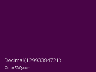 Decimal 12993384721 Color is a very dark magenta color and the nearest color is Loulou #460b41. Hex code #490447 and RGB value is rgb(73,4,71). In RGB color space, this color is composed of 29% red, 2% green, 28% blue, In CMYK color space, this color is composed of 0% cyan, 95% magenta, 3% yellow , 71% black , In HSL color space, this color has a hue angle of 302° , 90% saturation and 15% lightness.
