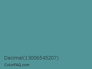 Decimal 13006545207 Color is a normal cyan color and the nearest color is Cadet Blue #5f9ea0. Hex code #529599 and RGB value is rgb(82,149,153). In RGB color space, this color is composed of 32% red, 58% green, 60% blue, In CMYK color space, this color is composed of 46% cyan, 3% magenta, 0% yellow , 40% black , In HSL color space, this color has a hue angle of 183° , 30% saturation and 46% lightness.