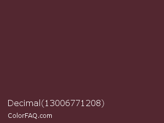 Decimal 13006771208 Color is a dark red color and the nearest color is Livid Brown #4d282e. Hex code #532730 and RGB value is rgb(83,39,48). In RGB color space, this color is composed of 33% red, 15% green, 19% blue, In CMYK color space, this color is composed of 0% cyan, 53% magenta, 42% yellow , 67% black , In HSL color space, this color has a hue angle of 348° , 36% saturation and 24% lightness.