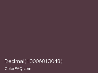 Decimal 13006813048 Color is a dark rose color and the nearest color is Matterhorn #4e3b41. Hex code #533842 and RGB value is rgb(83,56,66). In RGB color space, this color is composed of 33% red, 22% green, 26% blue, In CMYK color space, this color is composed of 0% cyan, 33% magenta, 20% yellow , 67% black , In HSL color space, this color has a hue angle of 338° , 19% saturation and 27% lightness.