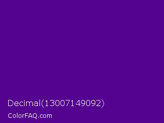 Decimal 13007149092 Color is a dark purple color and the nearest color is Pigment Indigo #4b0082. Hex code #540390 and RGB value is rgb(84,3,144). In RGB color space, this color is composed of 33% red, 1% green, 56% blue, In CMYK color space, this color is composed of 42% cyan, 98% magenta, 0% yellow , 44% black , In HSL color space, this color has a hue angle of 274° , 96% saturation and 29% lightness.