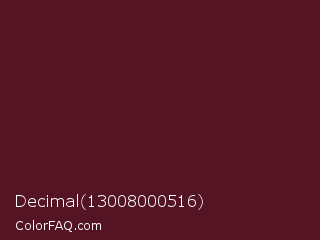 Decimal 13008000516 Color is a very dark red color and the nearest color is Maroon Oak #520c17. Hex code #551424 and RGB value is rgb(85,20,36). In RGB color space, this color is composed of 33% red, 8% green, 14% blue, In CMYK color space, this color is composed of 0% cyan, 76% magenta, 58% yellow , 67% black , In HSL color space, this color has a hue angle of 345° , 62% saturation and 21% lightness.
